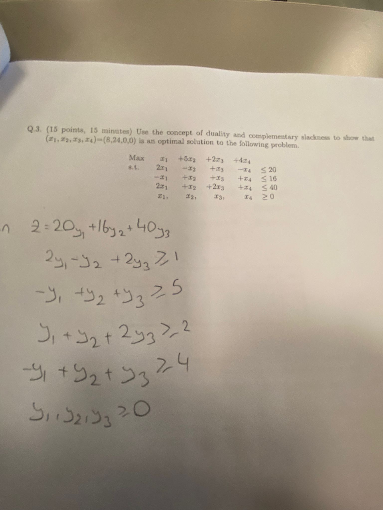 Solved 3. (Duality, Complementary slackness). Consider the | Chegg.com