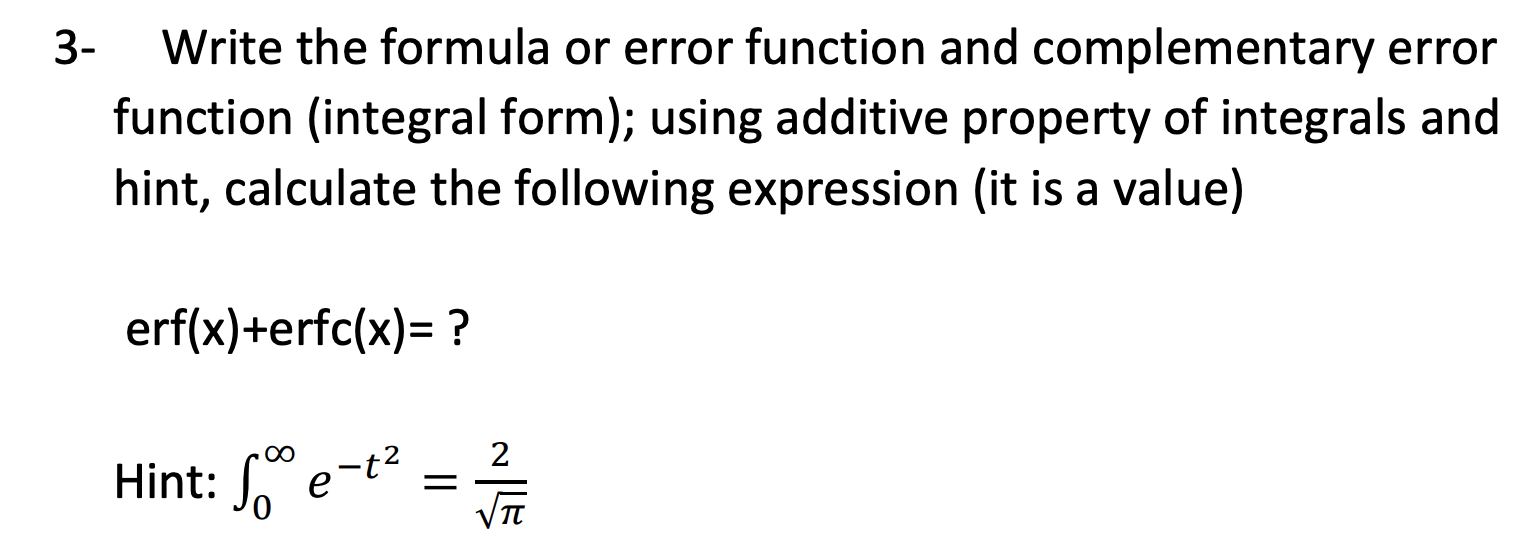 Solved Complementary Error Function erfcx=1−erfx=π2∫x∞e−t2dt | Chegg.com