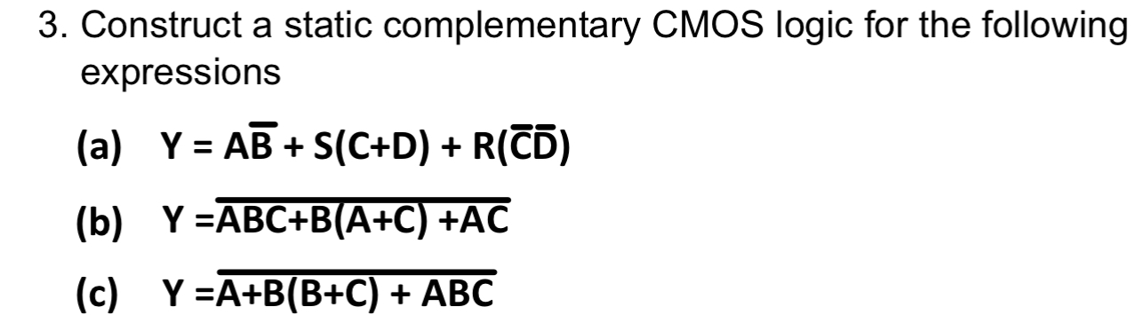Solved 3. Construct a static complementary CMOS logic for | Chegg.com