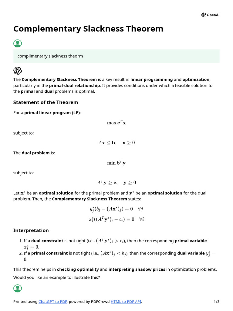 Complementary Slackness Theorem Overview | PDF | Linear Programming ...