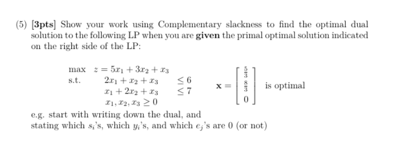 Solved Problem 3 (Complementary slackness, 5 Points): | Chegg.com