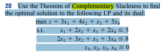 Solved 20 Use the Theorem of Complementary Slackness to find | Chegg.com