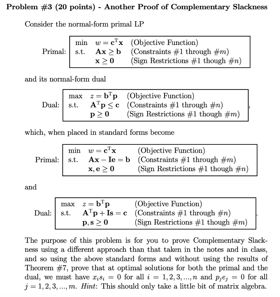 Solved Problem 3. Finish showing the Complementary Slackness | Chegg.com