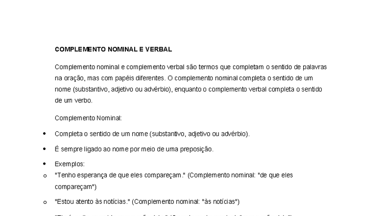 Complemento Nominal e Verbal: Diferenças e Exemplos - Studocu
