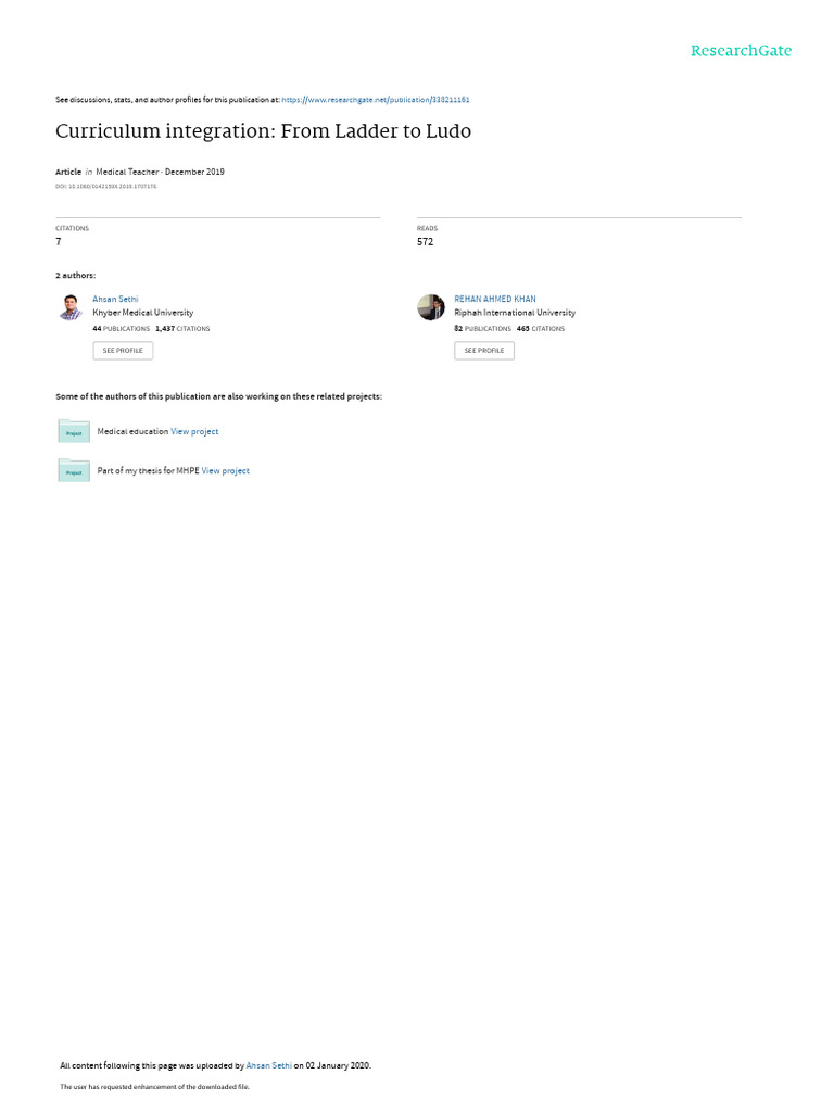 Integration From Ladderto Ludo | PDF | Curriculum | Medical Education