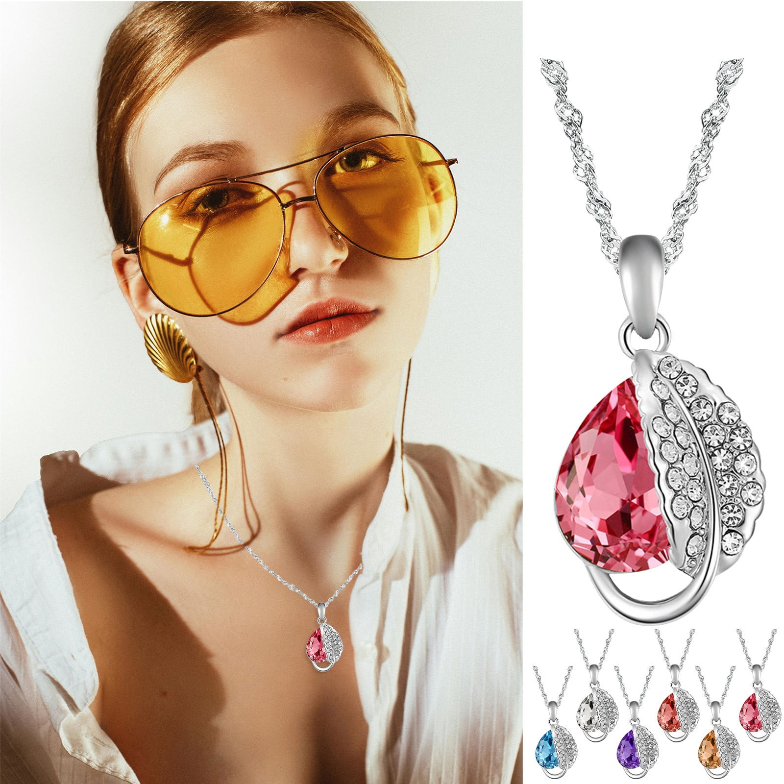 Collar de amor de cristal con hoja de diamante | Elegantes joyas de ...