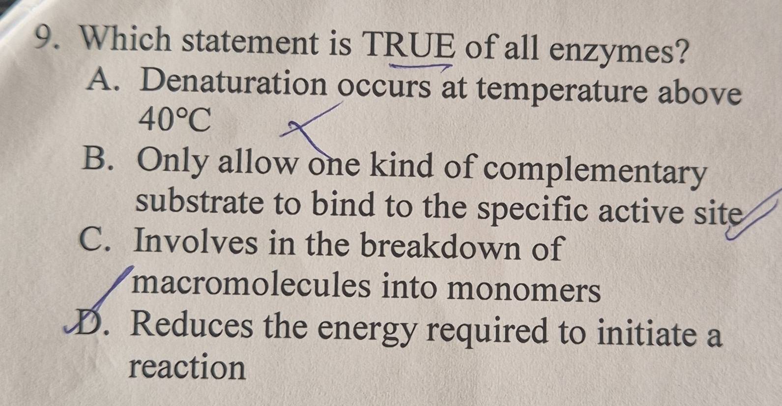 Selesai:Which statement is TRUE of all enzymes? A. Denaturation occurs ...