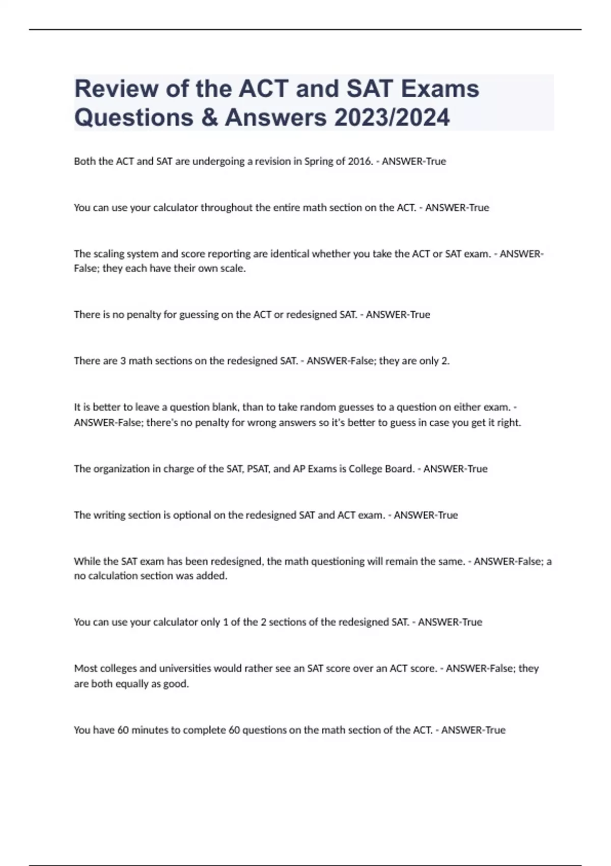 Review of the ACT and SAT Exams Questions & Answers 2023/2024 - E ACT ...