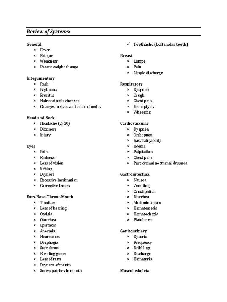 23+ Printable Review of Systems Templates & Checklists (Word) - Best ...