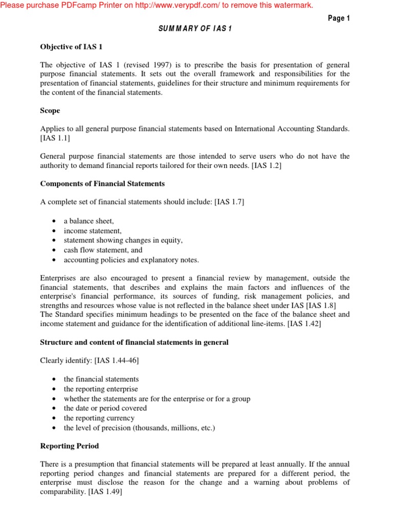 IAS 1 Summary | International Financial Reporting Standards | Income ...