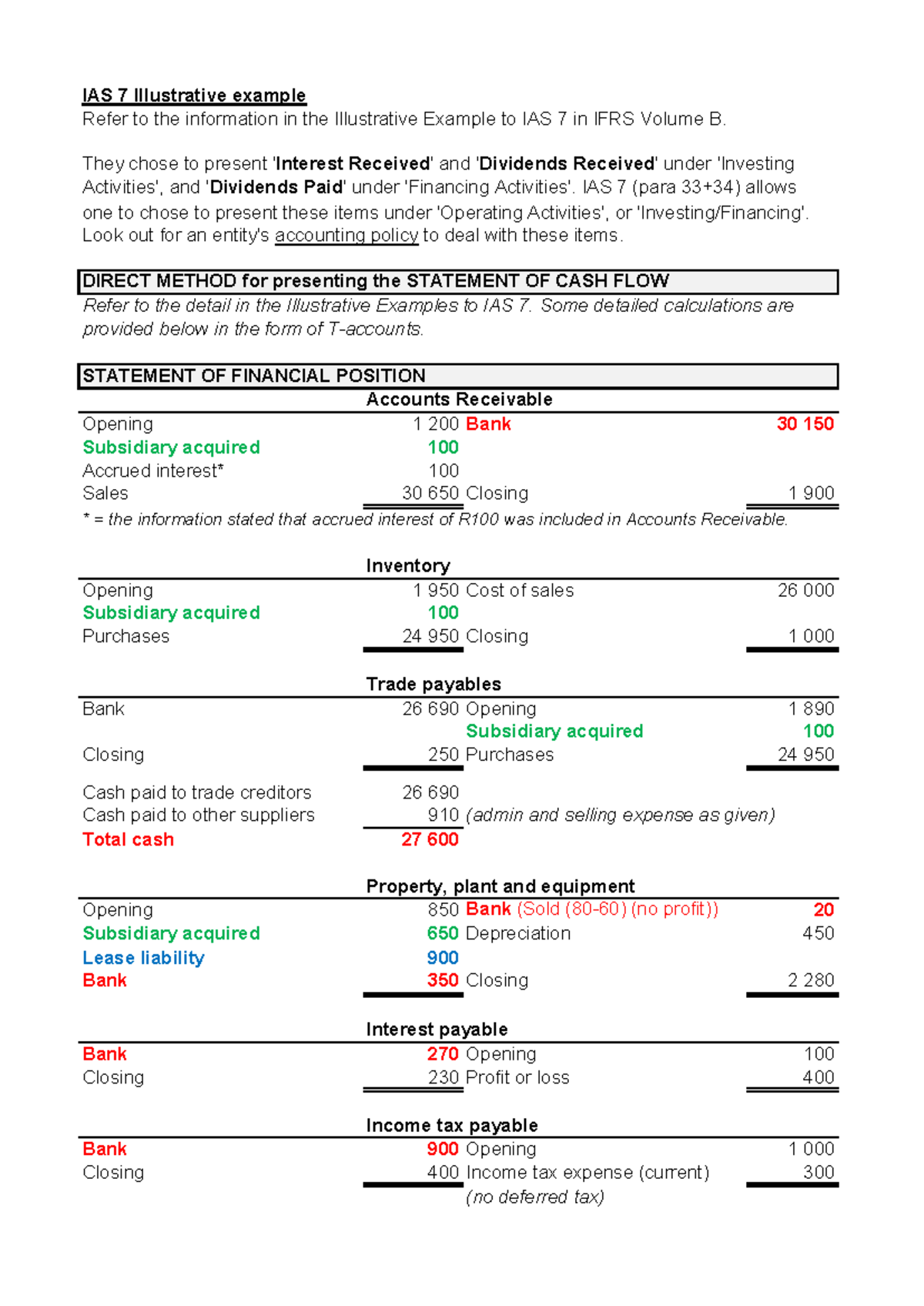 IAS 7 Cash Flow Statement: Illustrative Example Analysis - Studocu