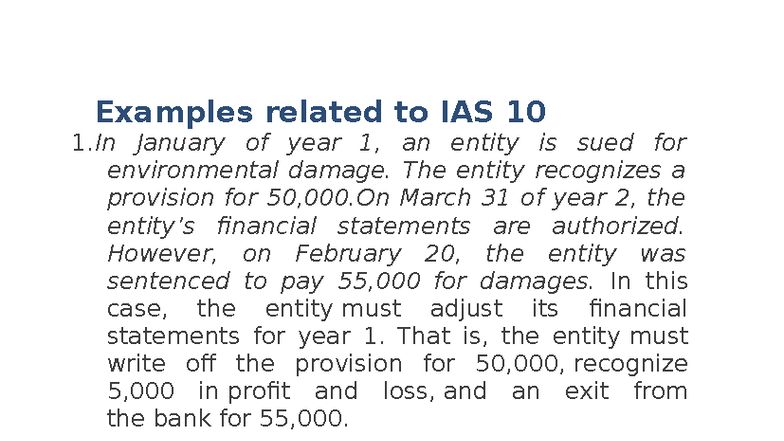 IAS 10 Examples: Adjusting Events After Reporting Period - Studocu
