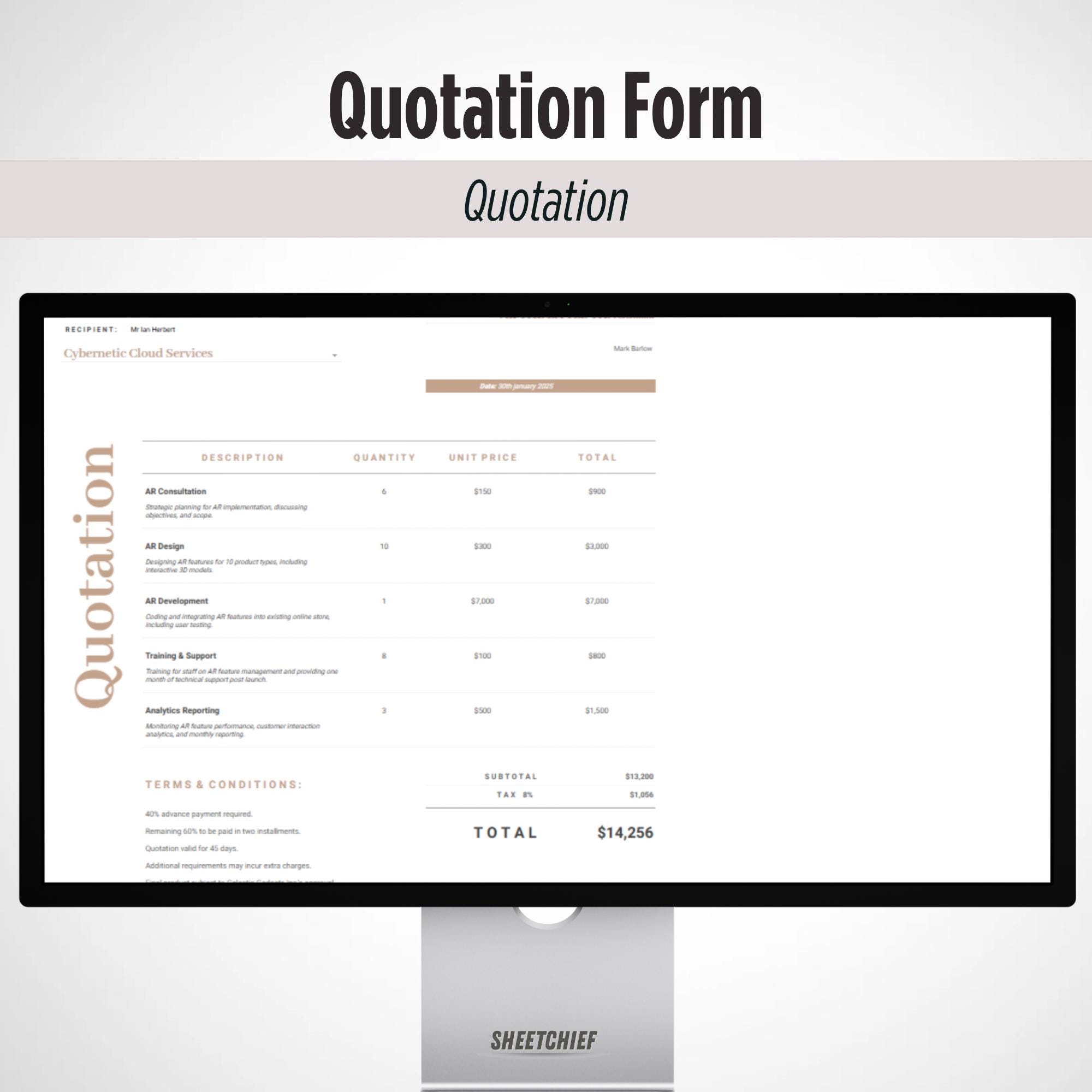 Quotation Form Template | Google Sheets | Professional Quote and ...