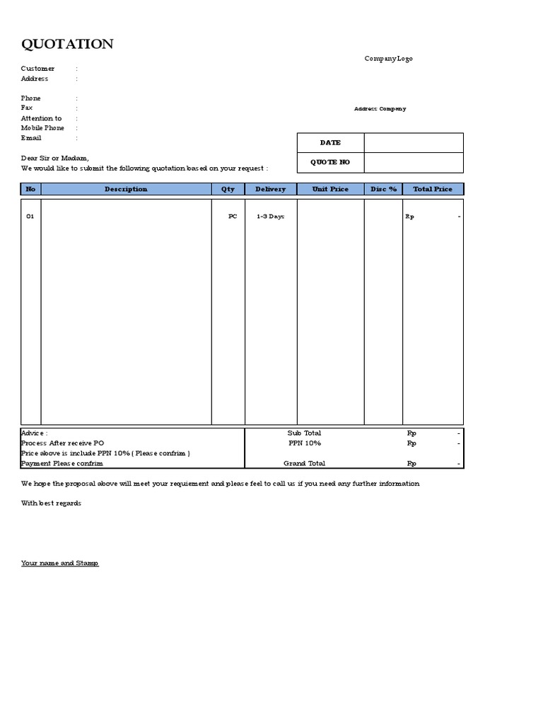 Company Product Quotation Form Excel Template And Google Sheets File ...