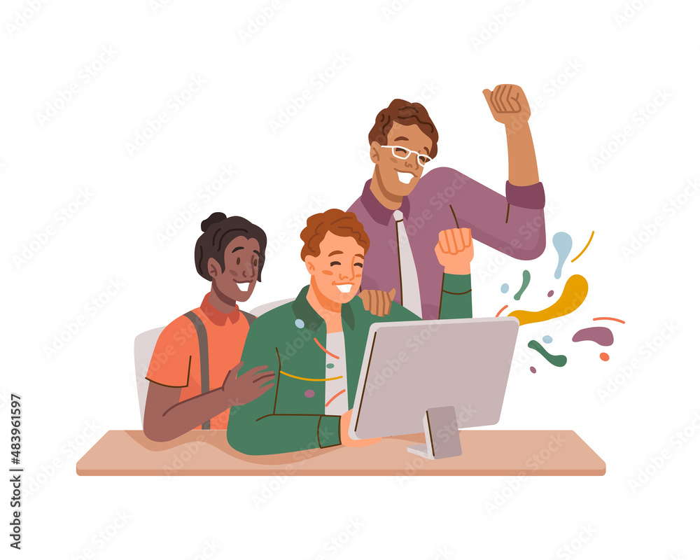 Vetor de Colleagues celebrating successful completion of projects and ...