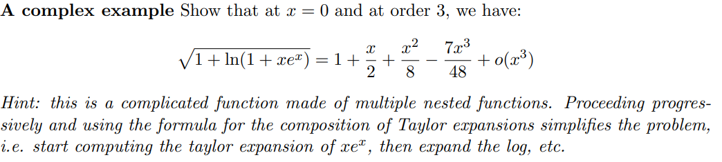Solved A complex example Show that at x = 0 and at order 3, | Chegg.com