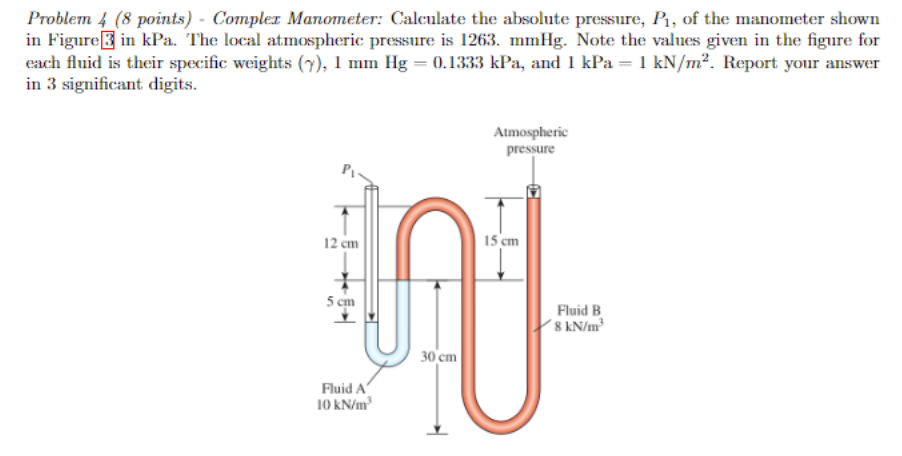 Solved Problem 4 (8 points) - Complex Manometer: Calculate | Chegg.com