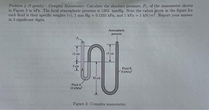 Solved Problem 4 ( 8 points) - Complex Manometer: Calculate | Chegg.com