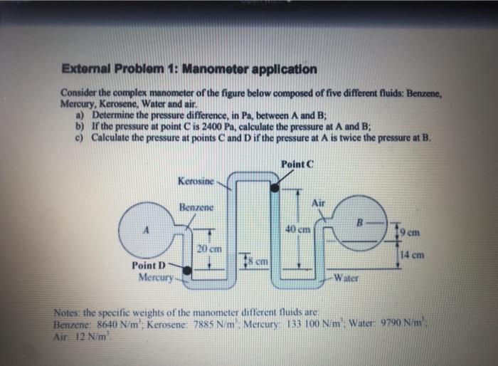 Solved External Problem 1: Manometer application Consider | Chegg.com