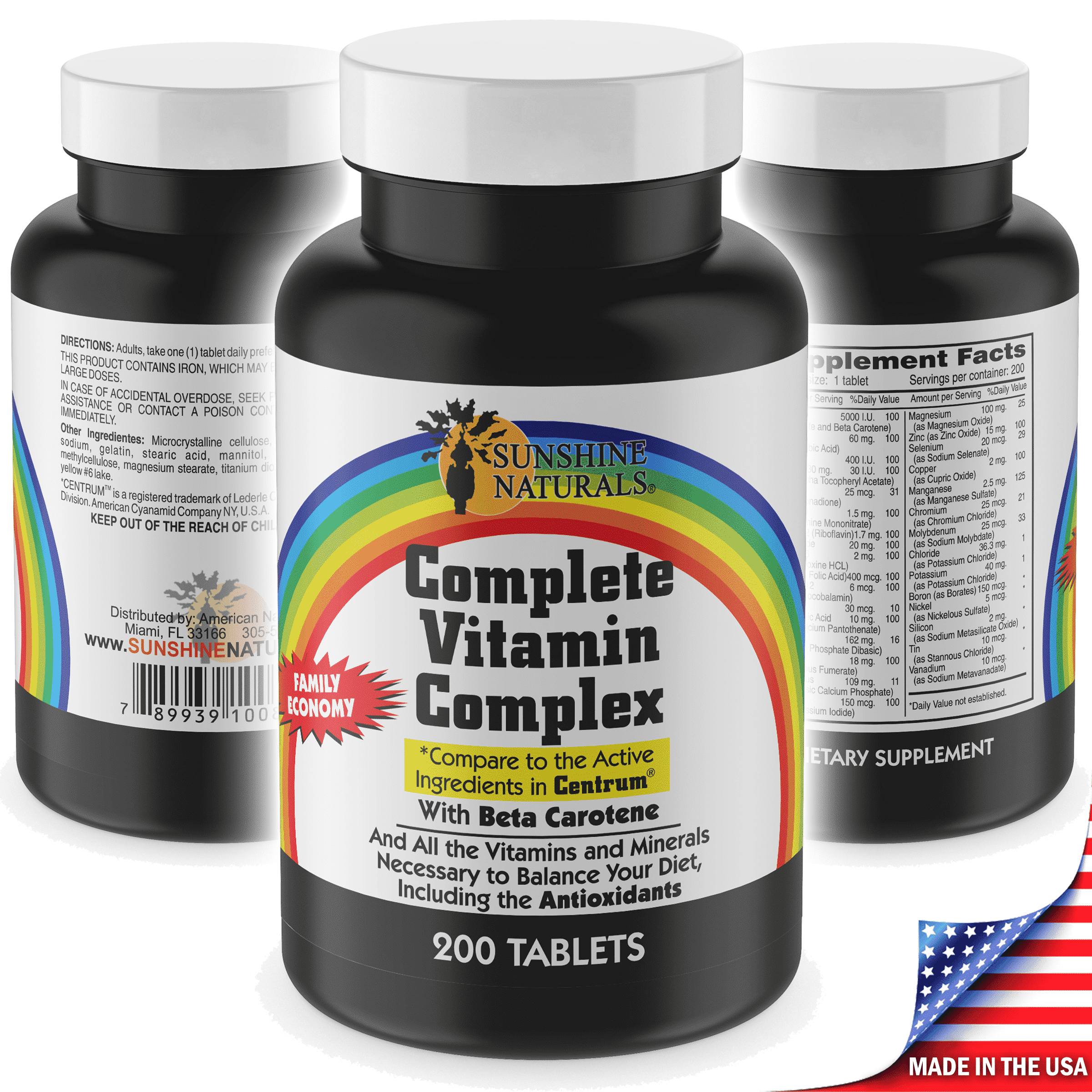 Sunshine Naturals Complete Multivitamin Complex for Immune and Bone ...