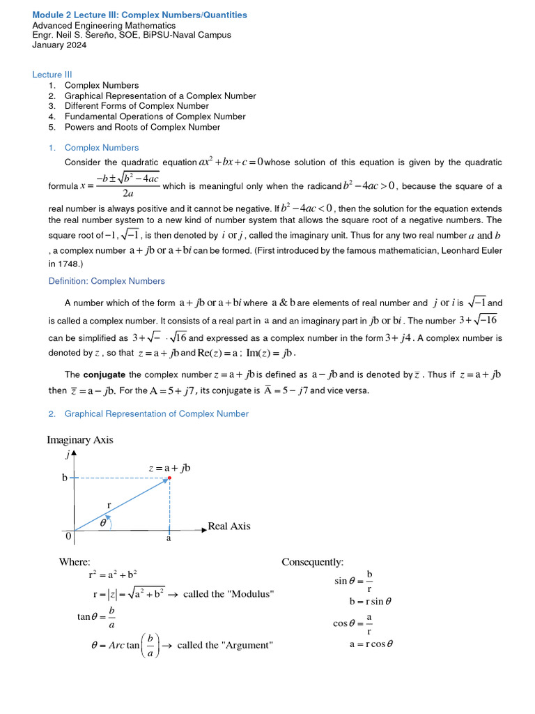 Module 2 Lecture III Complex Numbers and Quantities | PDF