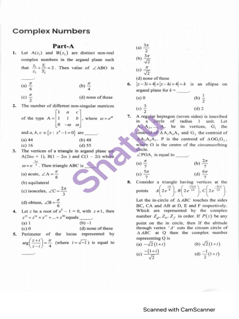 Complex Numbers Rev Sheet-1 | PDF