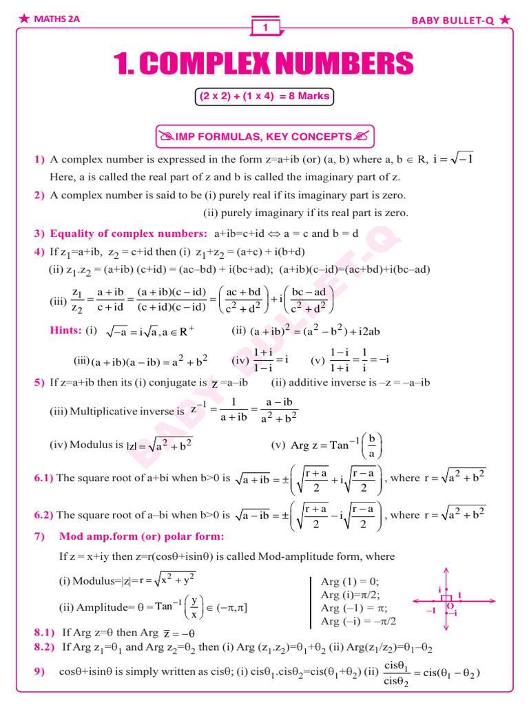 Complex Numbers Notes and Formulas PDF | PDF | Complex Number ...