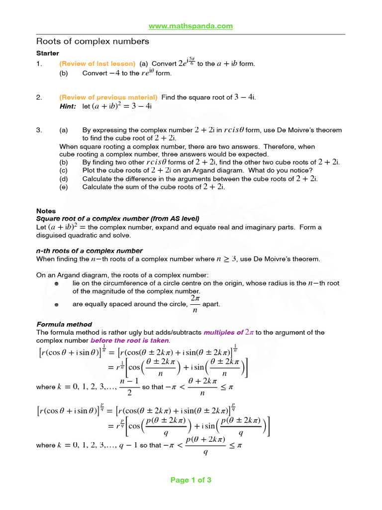 Roots of Complex Numbers LESSON | PDF | Complex Number | Numbers