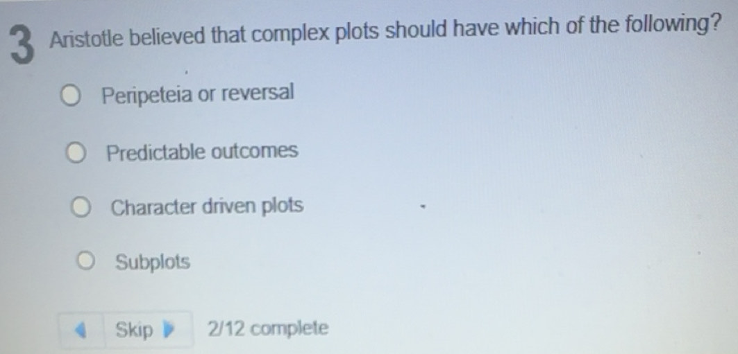 Solved: Aristotle believed that complex plots should have which of the ...