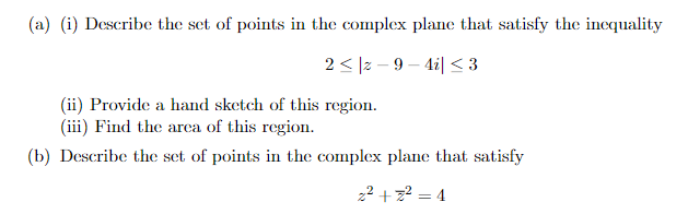 Solved a) (i) Describe the set of points in the complex | Chegg.com