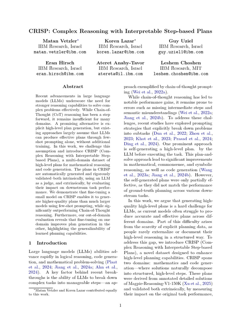 CRISP - Complex Reasoning With Interpretable Step-Based Plans | PDF ...