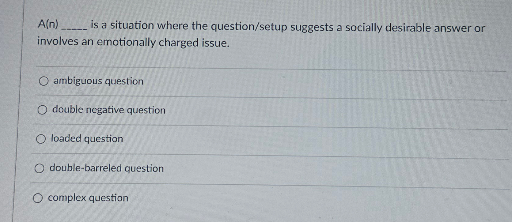 Solved A(n) is a situation where the question/setup | Chegg.com
