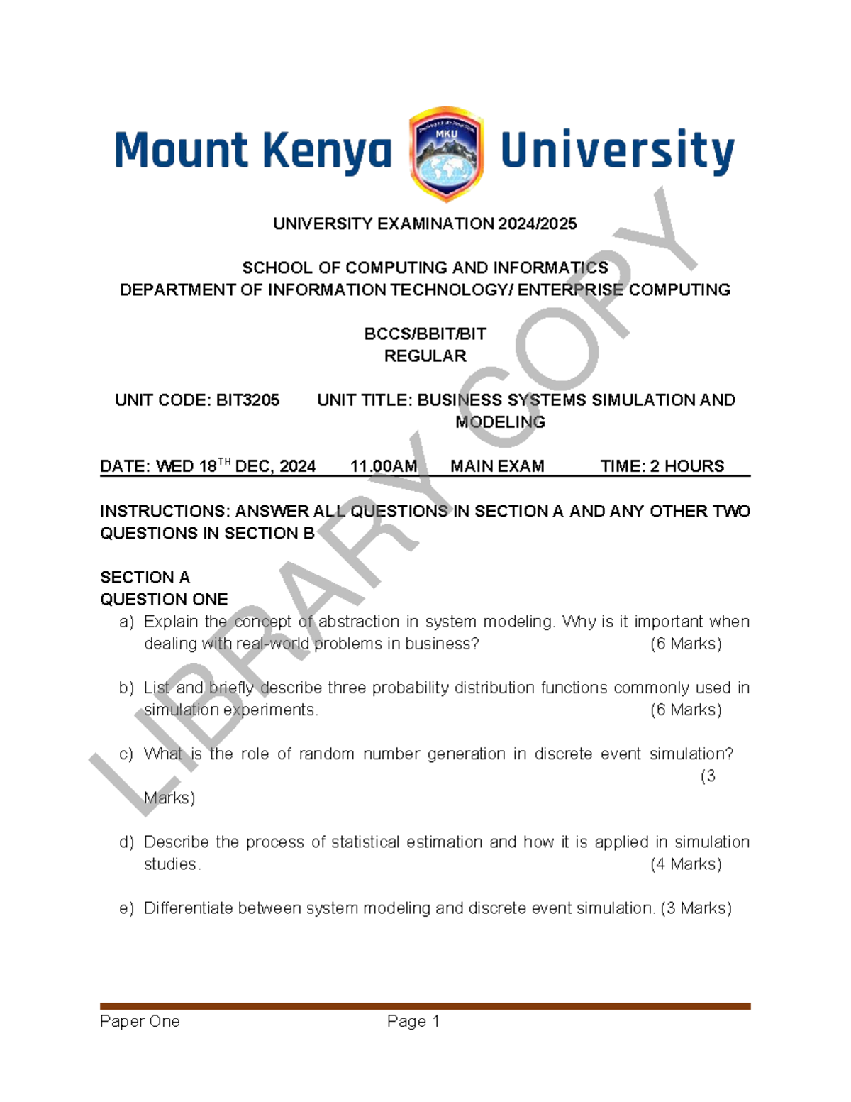 BIT3205 Final Exam: Business Systems Simulation & Modeling - Studocu