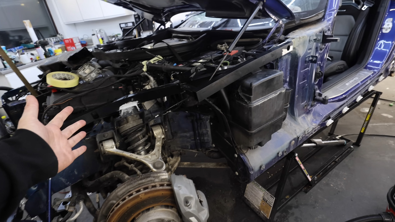 Complex repair and major chassis work on a wrecked German sportscar