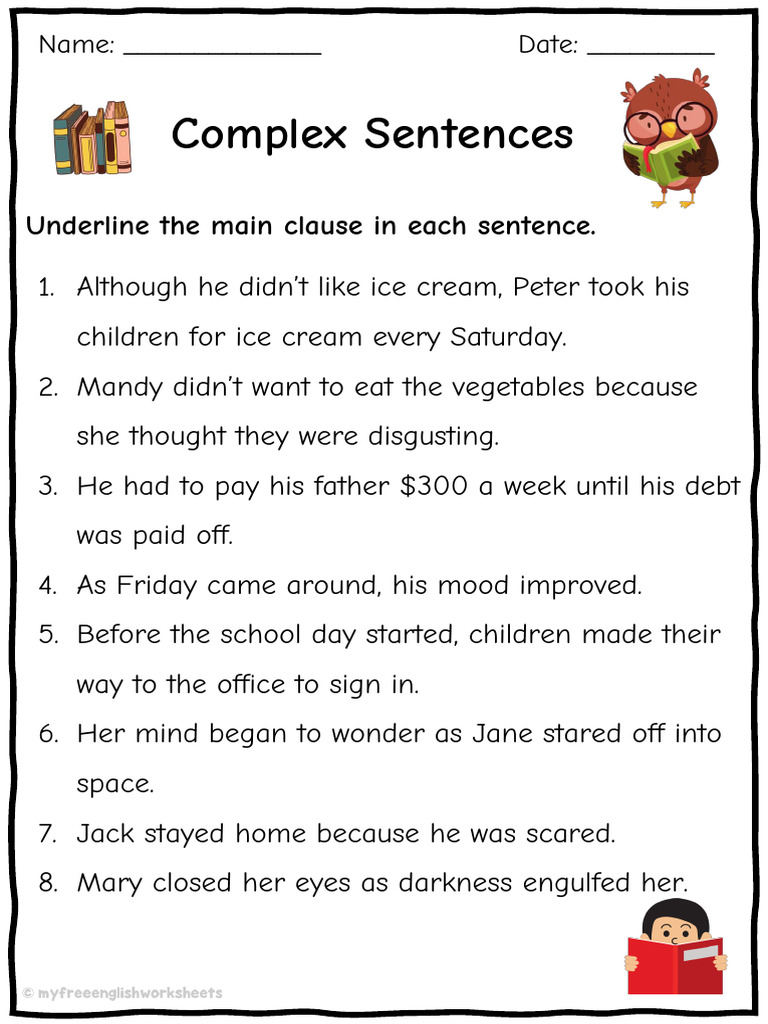 Complex Sentence Worksheets | Free English Worksheets