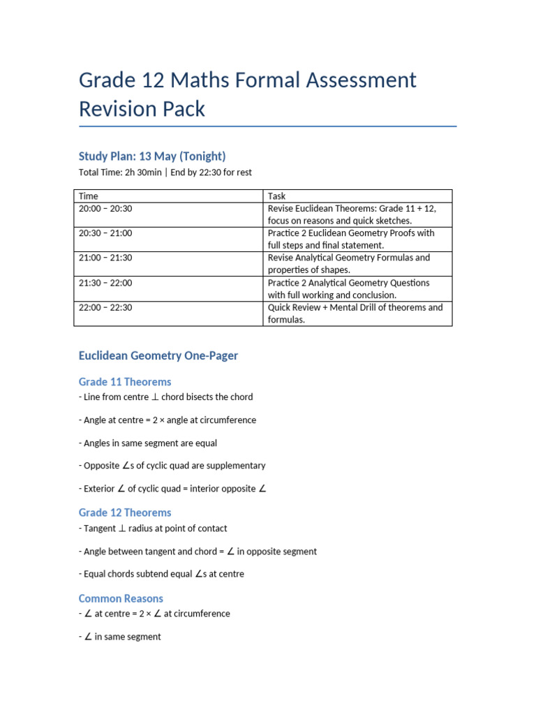 Grade 12 Geometry Revision Pack | PDF | Perpendicular | Rectangle
