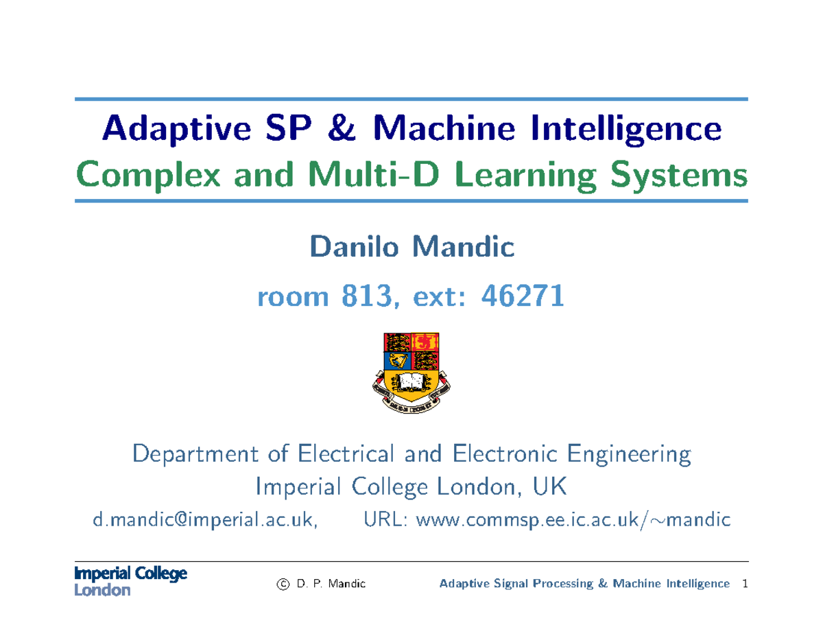 ASP MI Lecture 6 Complex LMS 2022 - Adaptive SP & Machine Intelligence ...