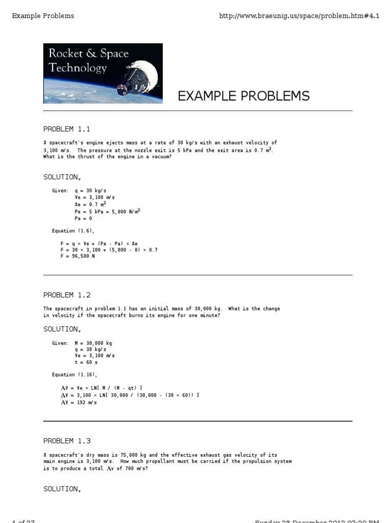 Example Problems Basics of Space Flight Rocket Propulsion | PDF ...