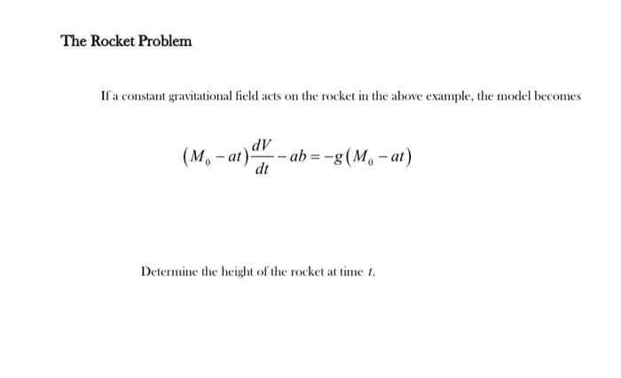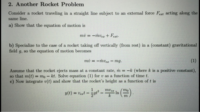 Solved The Rocket Problem: Given the basic equation for | Chegg.com