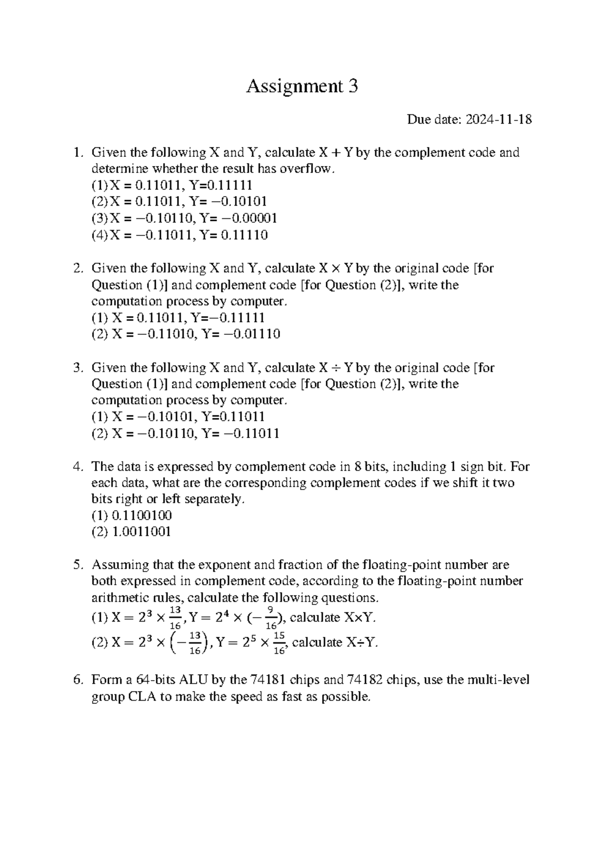 Assignment 3: Complement Code Calculations and ALU Design - Studocu