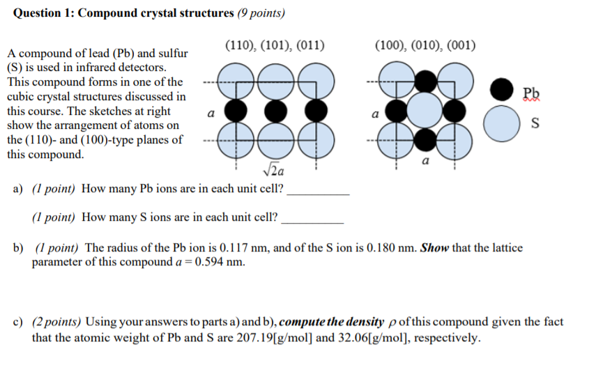 Solved Question 1: Compound crystal structures (9 points) | Chegg.com