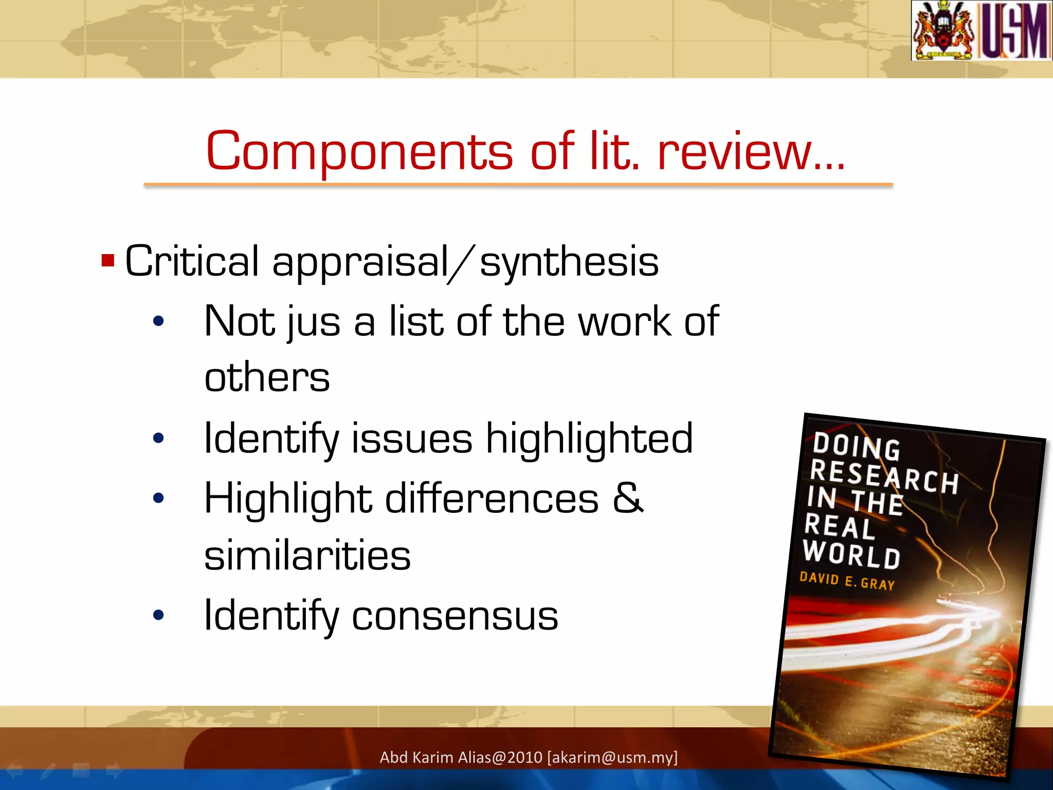 Components of Literature Review - Library & Information Management