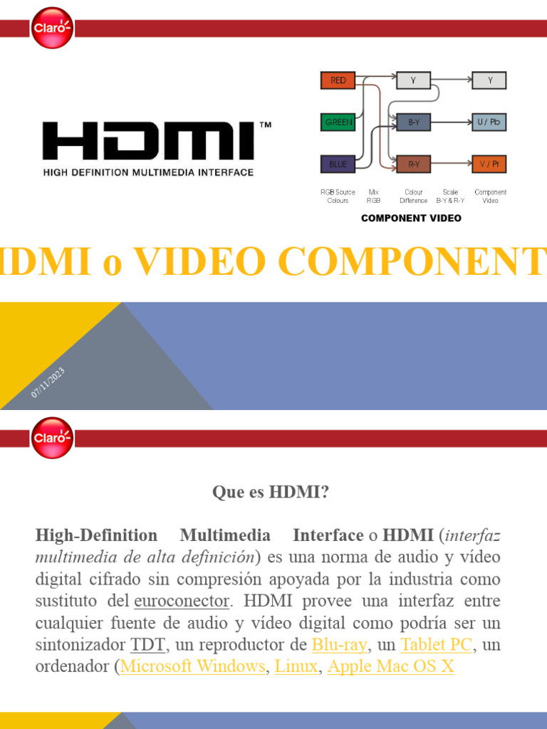 Evolución y Comparativa HDMI vs Video Componente | PDF | Hdmi ...