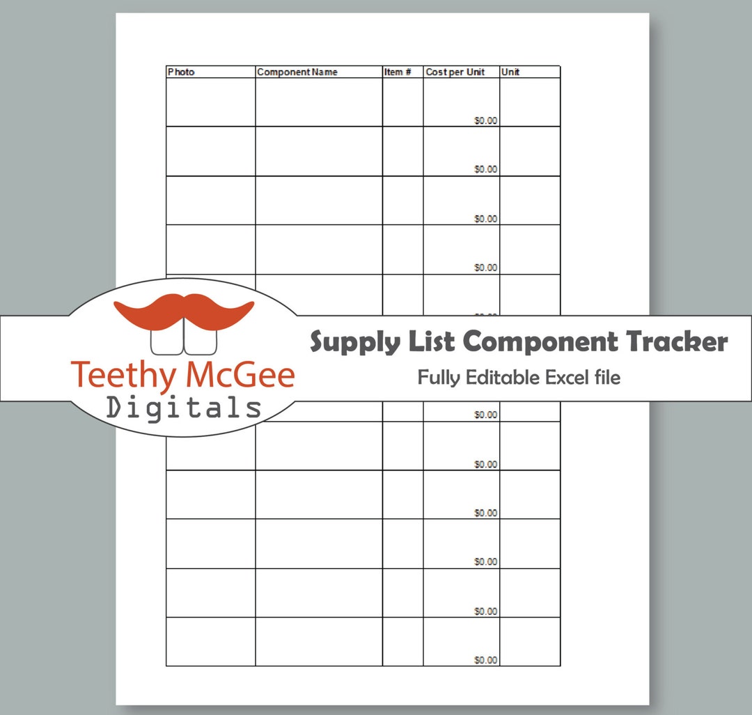 Supply List Component Tracker - Instant Download Editable Business Tool ...