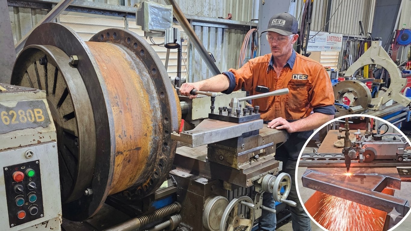 Large lathe test in action