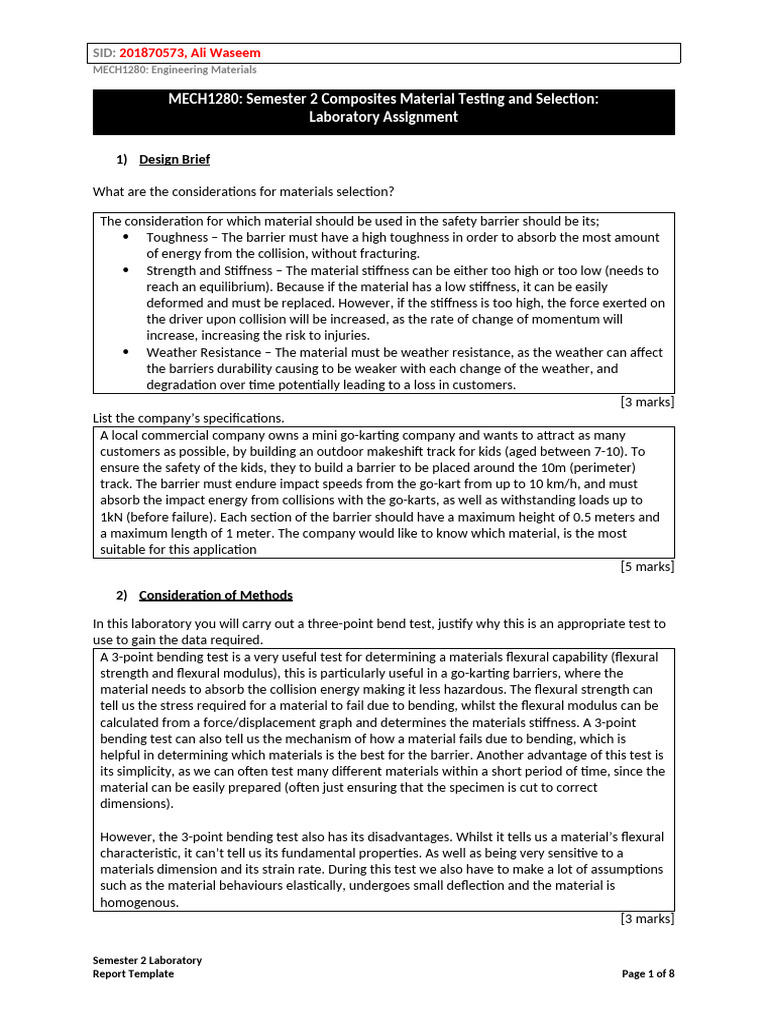 (PDF) Mechanical Properties of Composites - Laboratory Report