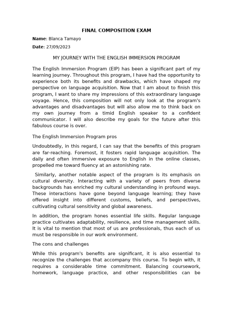 INTERMEDIATE 1 - FINAL COMPOSITION EXAM 2024 | PDF
