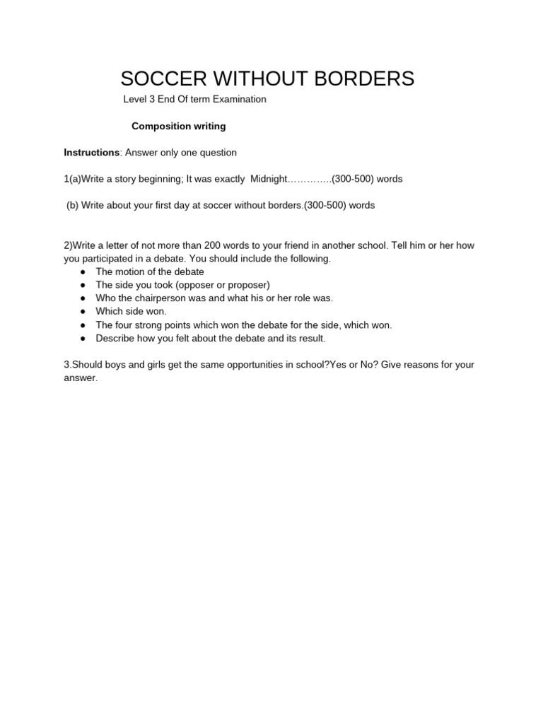 Grade 4 English Composition Term 1 Opener Exam 2025