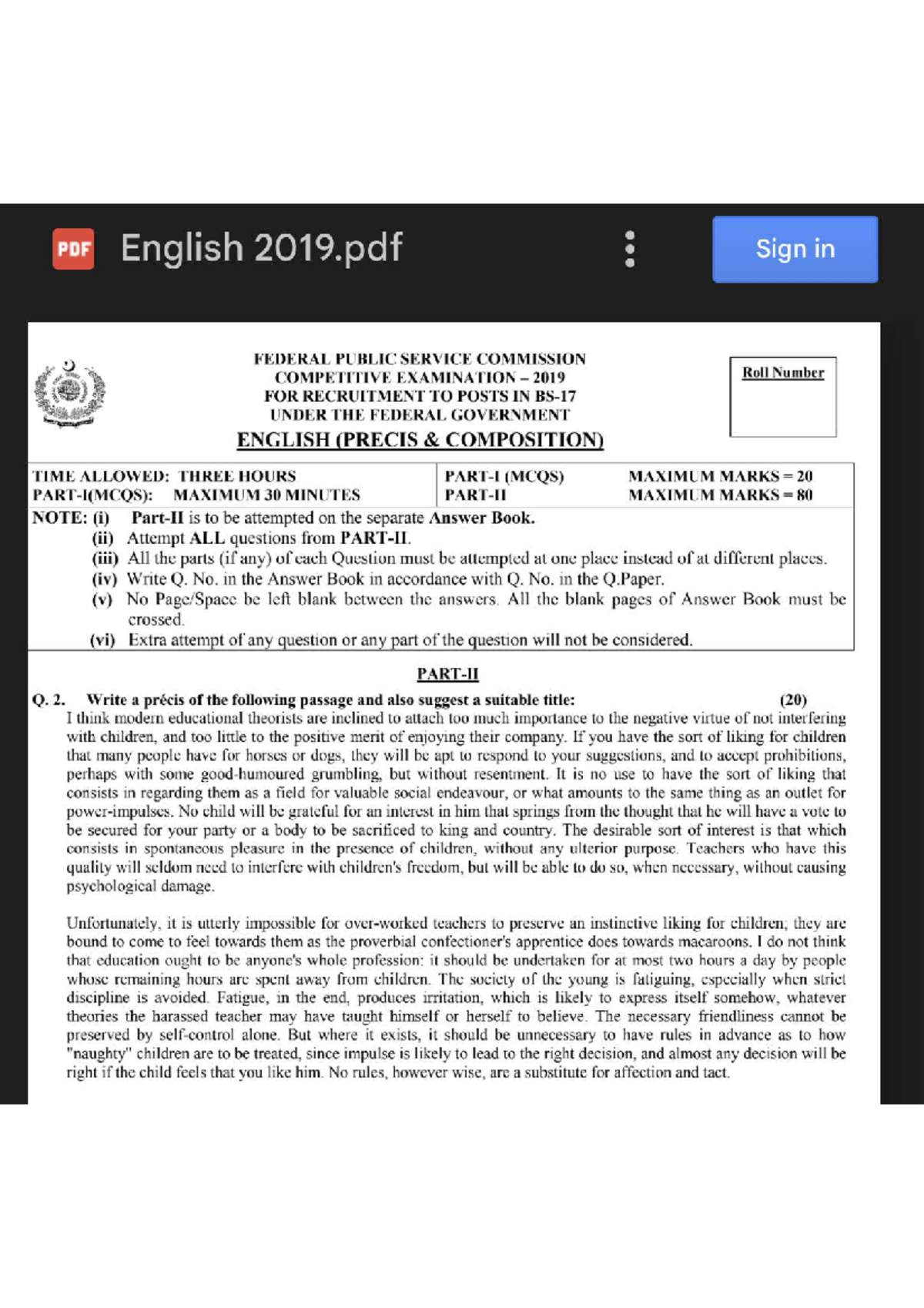 2019 English (Precis Composition) Exam Notes - Federal Service Exam ...