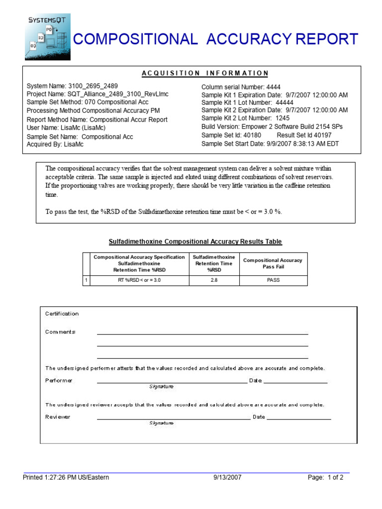 Compositional Accuracy Report | PDF | Laboratory Techniques | Analysis
